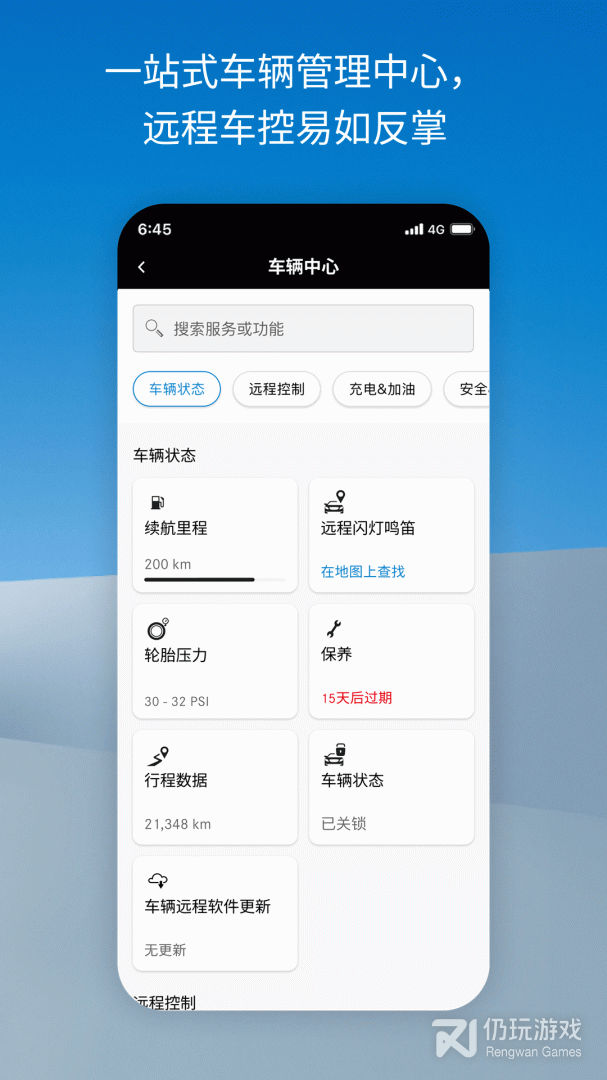 2、下载了这款app的用户可以通过手机对自己的车辆进行远程管理,随时查看它的情况,app还提供了很多的特色功能,有需要的赶紧来下载吧