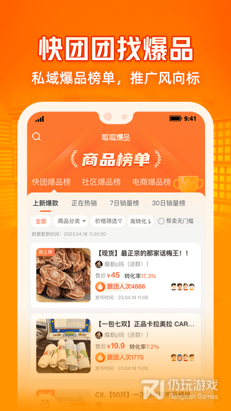 呱呱爆品是集数据服务、资源对接为一体的私域选品工具。可以为用户提供「私域爆品榜单」、「团长资源库」、「爆品数据分析」、「运营实操干货」等优质内容,帮助团长和供应商高效撮合对接,快速入局快团团