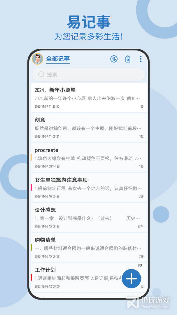 易记事是一款功能丰富的日记记事备忘录应用,它操作简单流畅,程序小巧,使用方便,设计精美,您可以使用它记日记,记笔记,记想法,随时随地记录生活中的点滴。
