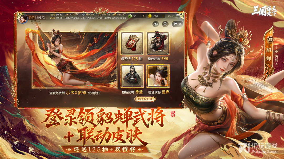 福利新服连开12天,游玩7天内送125抽及品质双橙将,S1赛季签到加送开荒神将貂蝉!