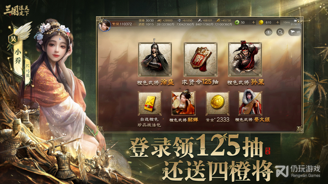 4、丰富的角色养成:玩家可以招募历史上的名将,并通过培养、升级等方式提升他们的能力