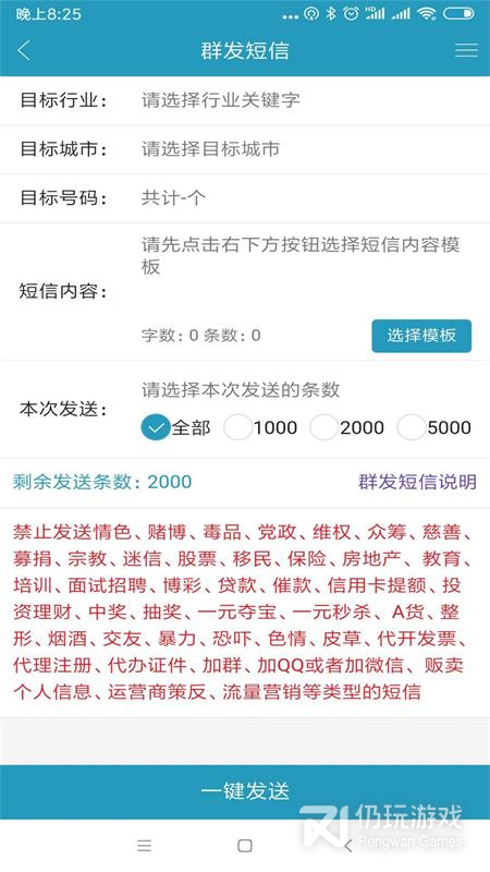 针对搜索的信息资源进行一键短信群发,更有力的来辅助开展市场。