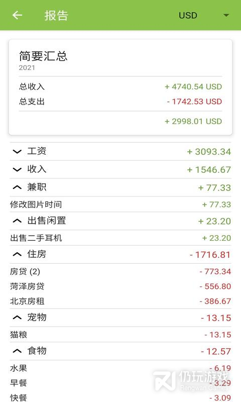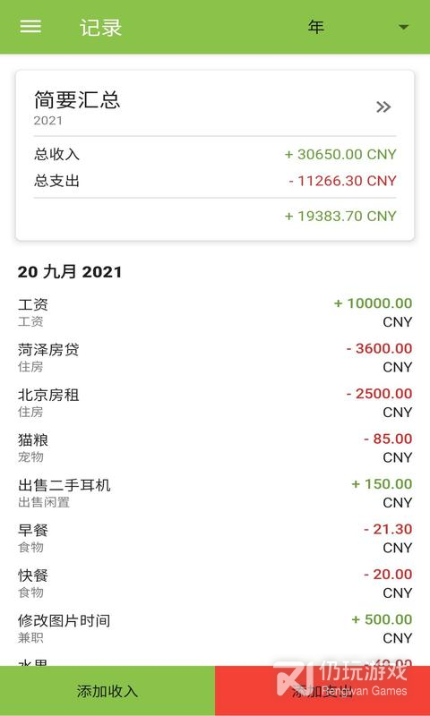 在这个软件里面您可以通过两次点击来管理您的收入和支出,然后再点击两次即可获得一份报告。