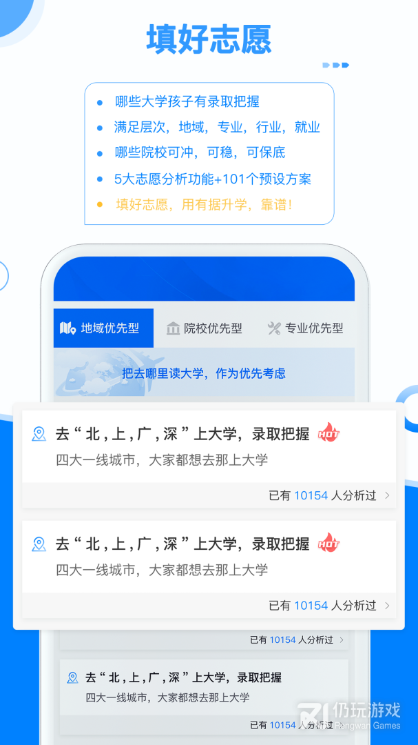 通过即时发布的分省垂直化的高价值高考升学内容帮助用户了解大学,专业,升学政策等,25个垂直频道,让您实时掌握关注的升学信息;