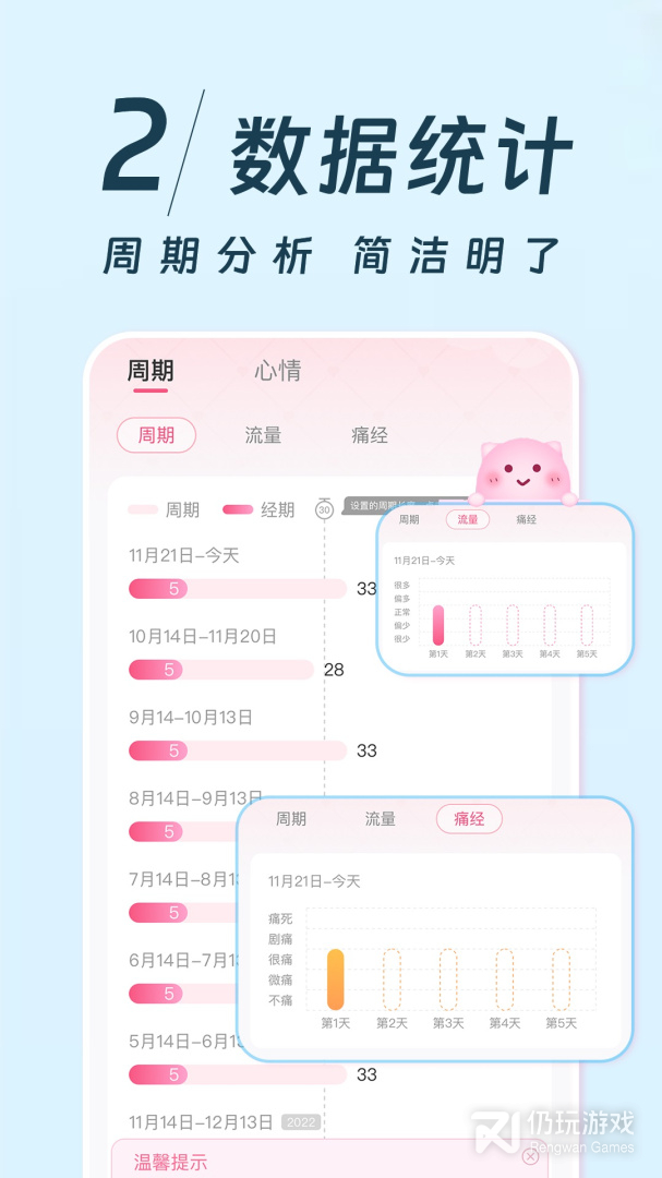 4、全面记录并分析您的生理数据,生成直观易懂的图表,帮助您深入了解自己的身体状况。通过精准的数据统计,让您更好地掌握身体节律,为健康生活提供有力支持