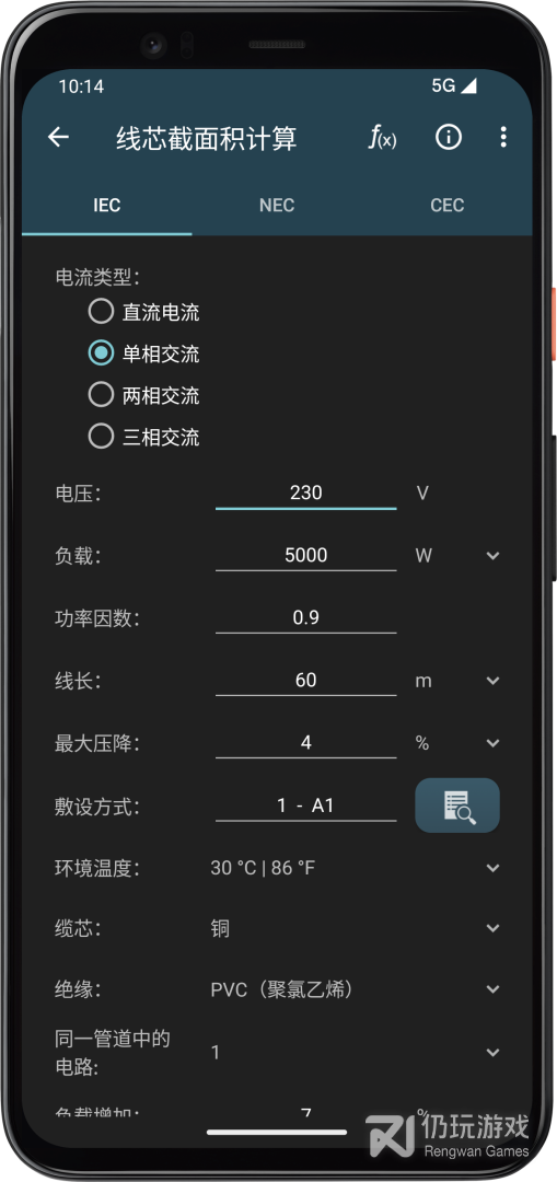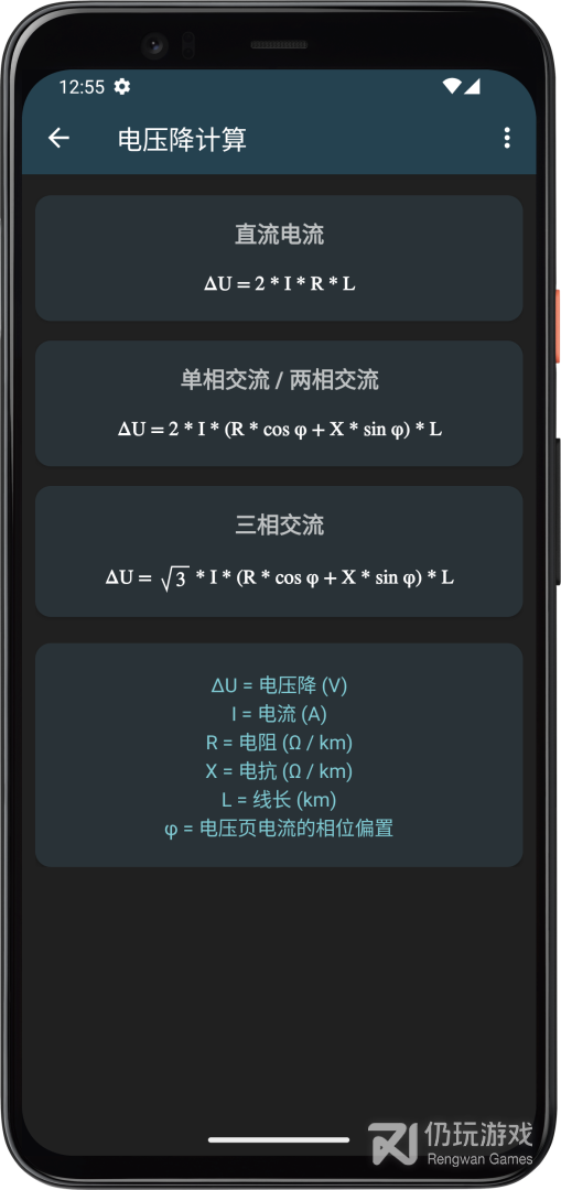 4、可以用来计算电压降、电流、电压、有功功率、电机转速、电机效率等等,覆盖电工作业所有需要进行计算的功能