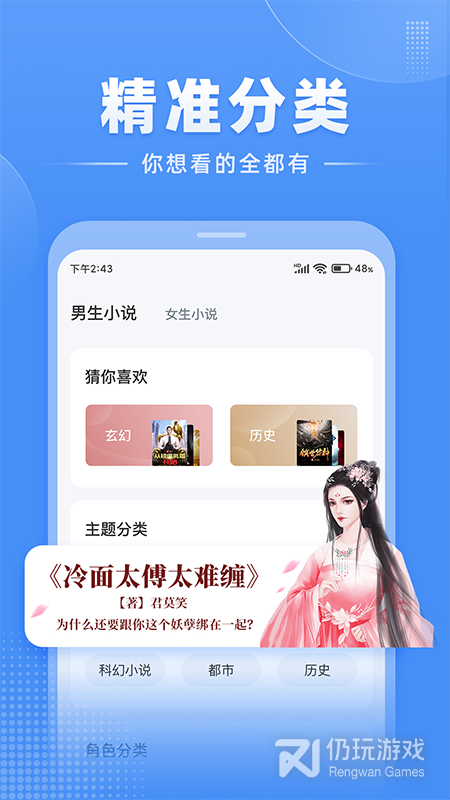 2、点击分类,里面拥有非常丰富详细的题材可以任由用户选择,如穿越、都市、末世、游戏。武侠、科幻等等;
