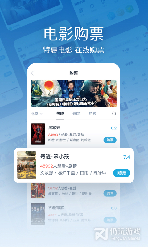 ——支持全国100多个城市400多家电影院手机在线选座购票,价格更优惠,支付更方便安全