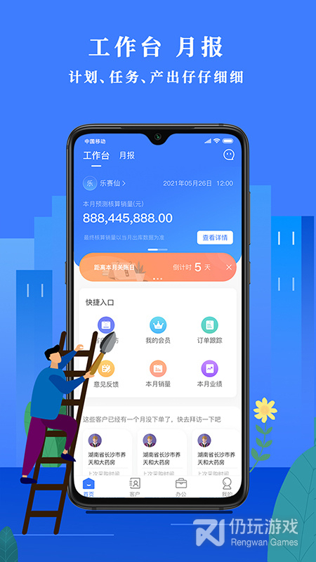 为用户服务的销售软件。在这个软件中用户可以获得非常专业的销售问题的答案;您可以通过这个平台实时管理各种日常任务,各种数据和信息都可以直接在手机上浏览、管理还是很简单的,直接手机可以实时管理所有客户信息,软件还可以帮助用户设计很多销售方案,有需要的朋友可以试试。