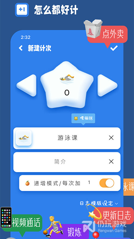 计次郎是一款计次的工具,这款工具能够记录你的每一次,这个每一次是没有限制的,你的任何内容都能够在上面进行记录,支持多种计次的方式,可以对你进行提醒,不管是锻炼、工作还是学习上面的内容都可以使用到,能够适用的场景非常的多,快来下载这款计次郎!
