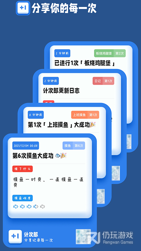 每次计次均可记录当时的心情、图片,生成卡片分享给别人,那真是能够获得满满的成就感。