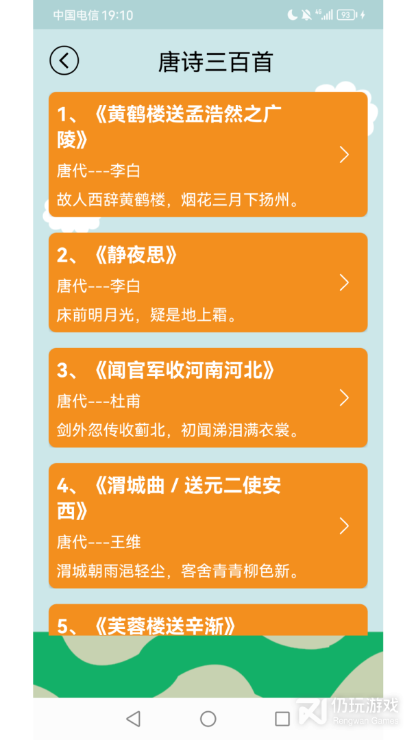 2、大部分儿童在识字时都会通过学习古诗词来进行识字启蒙,古诗词最新版app就非常适合幼儿学习古诗词最新版本,所以每首诗都会有真实人声朗读,感情充沛抑扬顿挫,并配有背景音乐,孩子可以跟着人声朗读来学习和背诵古诗词