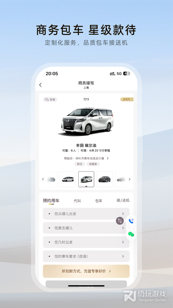 奢华出行:预约制点对点五星级接送服务,标配全球一线豪华品牌经典商务车型,尽享奢华人生。