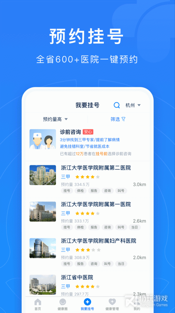 4、为浙江用户提供500多家重点医院的预约挂号服务,只需要在手机上就能预约