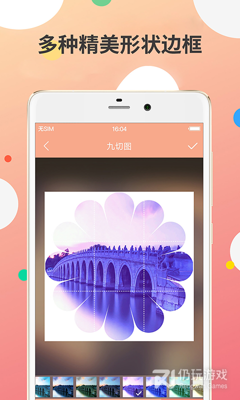 制作流行九宫网格图,快捷分享到微信、微博、Instagram上的设计工具;可以将一张照片切成3x3、2x2、1x1、1x3、2x3的网格图,并添加上特效、装饰边框或者裁剪成苹果、桃心、动物、花朵等形状;方便将你收藏的九宫图修改为新的九宫图;快来制作好玩的九宫图,成为微信,微博达人吧。