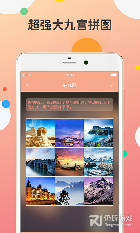 2、强大的拼图功能允许用户替换、旋转和缩放图片