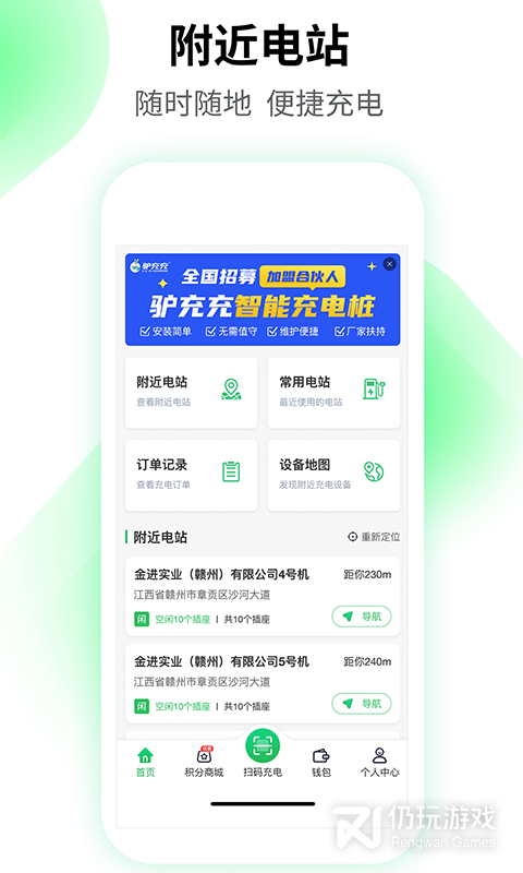 1、新能源汽车和电动车出门之后没有电是最让人头疼的,想要快速找打充电桩就快来下载驴充充APP吧,大家下载软件之后就可以轻松定位自己的所在位置,软件会自动为大家寻找附近的充电桩和站点,不认识路的话还可以一键导航,让大家的出行更加便捷