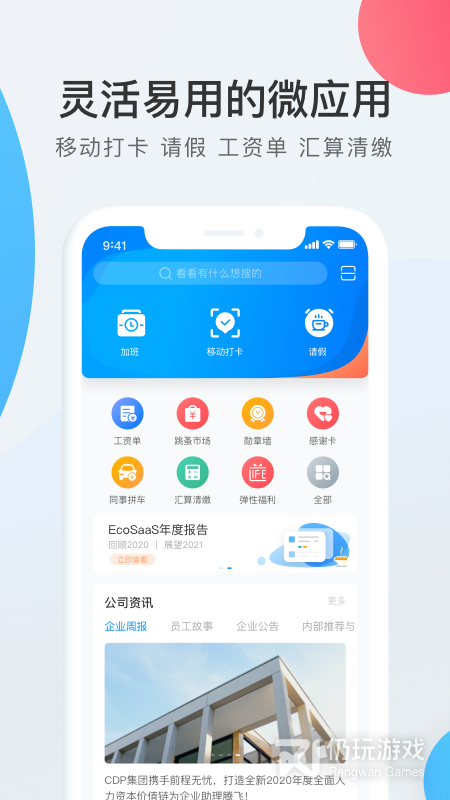 WorkLife,是CDP集团EcoSaaS平台的移动端应用,WorkLife充分体现了 “未来科技+人文关爱”的服务理念,全方位连接员工自助与沟通、激励认可、薪资考勤、弹性福利、健康管理、美好生活等微应用,灵活易用的SaaS系统,助力企业高效沟通与管理。通过科技与服务的结合,实现 “未来工作”,“未来生活”,“未来管理”。