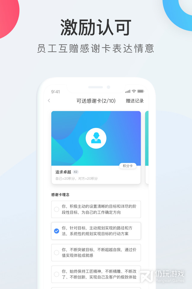 【激励认可】线上感谢卡,同事间可第一时间表达感谢。