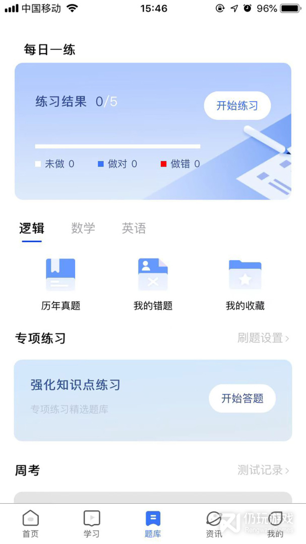 3.在线练习题库,日常刷题,进行周考或月考测试