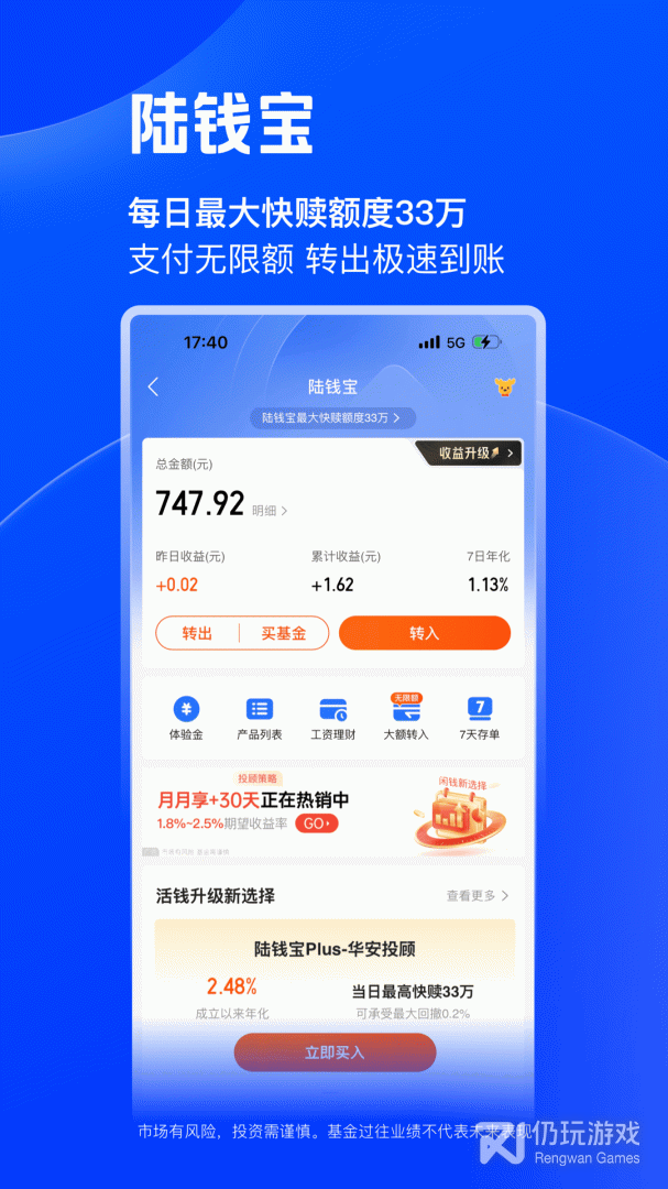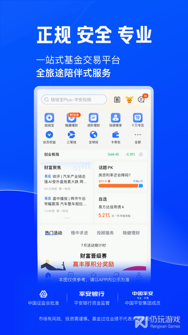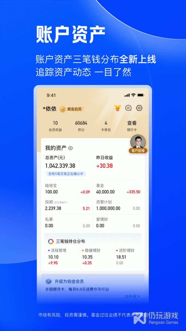 陆pro是一款非常好用的网络在线理财软件,全新的设计为了更好的服务于客户的需求而打造,专属定制,为你的资金安全保驾护航,专业人士帮你进行市场调查和分析为你推荐一套方案,让您第一时间掌握理财良机,随时随地掌控自己的账户。