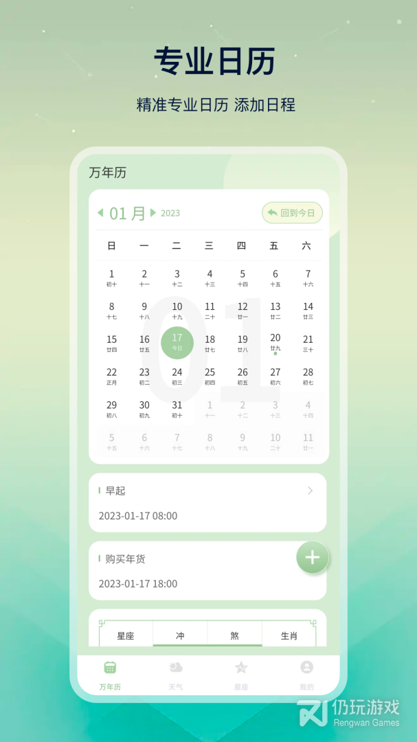 2、还可以在软件中设置日期提醒、备忘录等内容,能够帮助用户更好的了解每一天的运势,非常好用