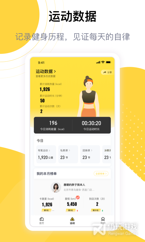 有氧运动、课程信息,体测数据,练多多记录你的进步