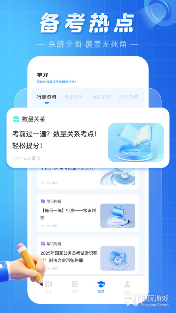 2、考公的人数一年比一年多,大家都想进入体制内工作,拥有一份可以干到老的铁饭碗。考公雷达app是专为考公人打造的一站式备考服务平台,软件提供了最新的考试资讯和动态,让用户可以尽早了解各省市地区的招考职位。还有精品好课、海量试题和丰富的学习资料可供用户复习