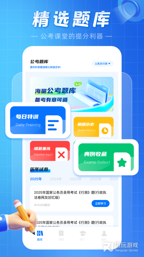 考公雷达APP是一款专门为有志于考取公职人士提供的学习软件。其采用AI智能算法,结合大数据分析,全面覆盖各领域的公务员考试内容,赋予用户高效而轻松的学习体验。同时,还特别设置了考试题库和模拟考试功能,帮助用户全面提升应试水平。此外,APP还为用户提供了考试时间表、考场指南等实用功能,让备考过程更加自如。