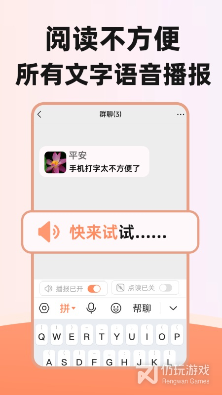 这是一款功能强大、界面美观的输入法应用,旨在为用户带来全新的输入体验。它结合了先进的点读技术和智能帮聊话术,无论是日常聊天还是工作沟通,都能让您的输入更加高效、便捷。