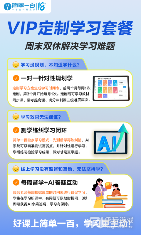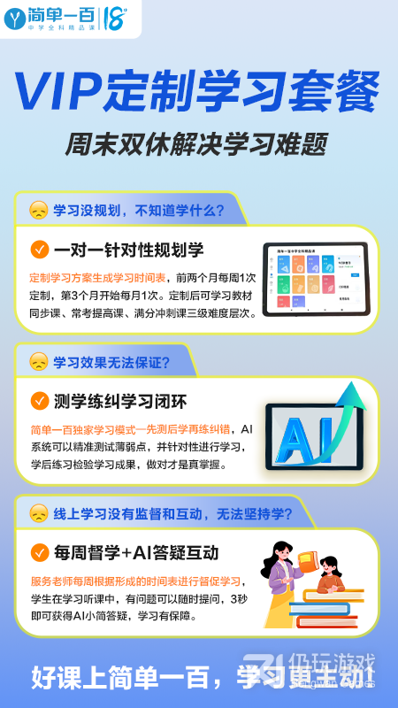 1、致力于帮助有需要的孩子花最少的时间解决最急迫的问题。简单一百把“自主学习力