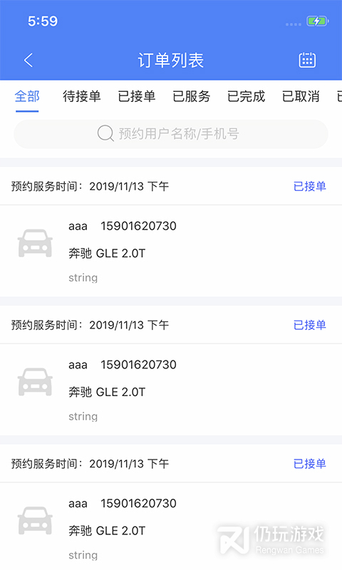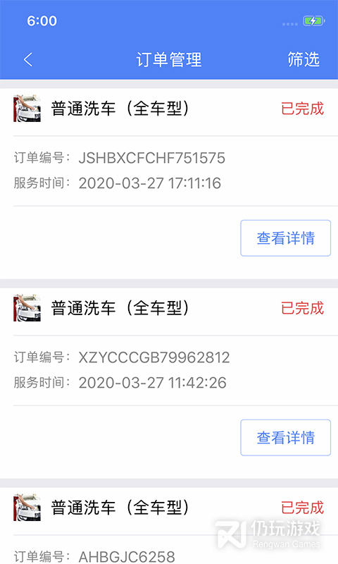5、会将所有的订单数据进行统计,商家可以知道各个汽车服务的内容