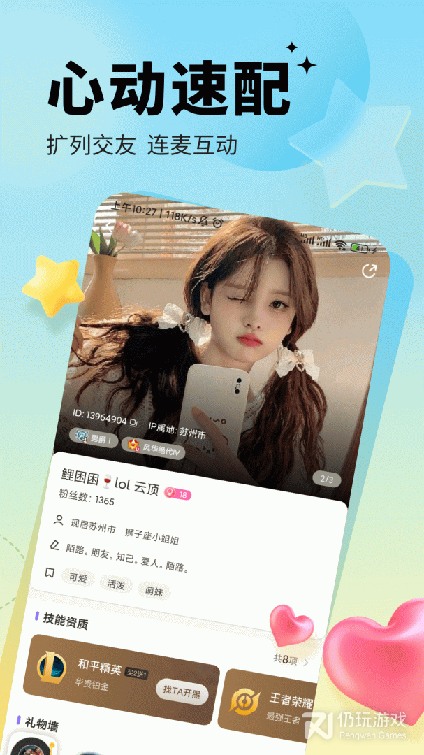 求带专业的游戏陪玩APP,五万游戏妹子的共同选择,边边聊天,同城私密交友再也难不倒你,带你遇到心动的Ta