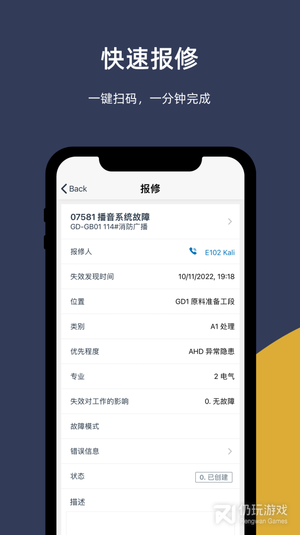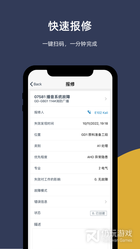 2、在线报修的功能,用户可以在整个巡查的过程中发现有设备出现问题,在线直接进行编辑内容进行上报
