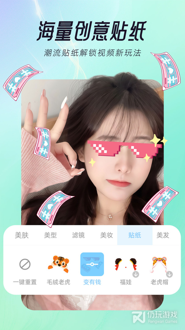 2、这款app可以说是比较优秀的智能AI识别软件,很多时候都可以随意尝试各种不一样的经典贴纸,和朋友视频只需要一键开启即可后台运行给你得视频悄无声息一种强大的美颜功效哦