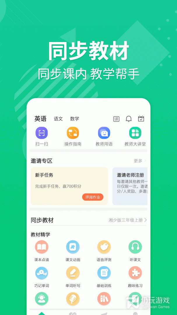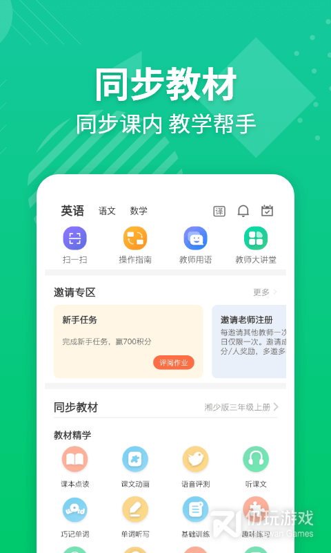 3、平台面向于小学教师倾力打造,汇聚万千英语教学资料,紧跟教材实时同步,可以协助老师更好的进行教育,让老师更精准、更高效、更全面的进行教学,同时也帮助老师减轻了工作的负担,配合app轻松工作,智慧教学