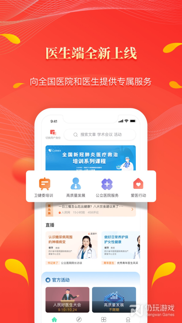 2、人民好医生是人民网,人民日报官方推出的一款医疗健康app,旨在打造一款权威的名医科普平台,医生还可以与病患们进行直播互动沟通,关注当前国内的养老、健康、治疗、护理等相关问题,改善老年人健康状况,提升生活质量