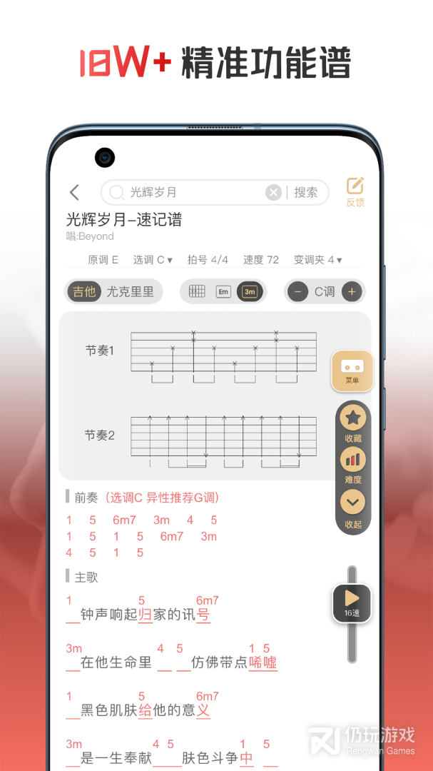 2、火听翻谱器最新版是一个专业的乐谱软件,在这里收录了吉他谱、钢琴谱、乐队总谱、指弹谱等等,支持搜索的功能,让大家在演奏乐器的时候不用担心没有曲谱,输入关键字就可以找到自己想要演奏的曲谱