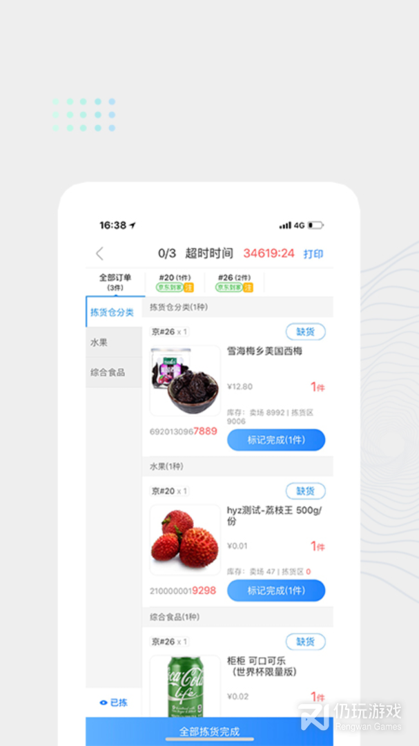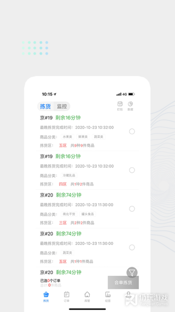 3、拣货:多重履约模式可供商家选择,完成不同场景和渠道的多订单处理拣货流程