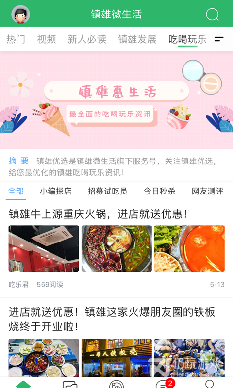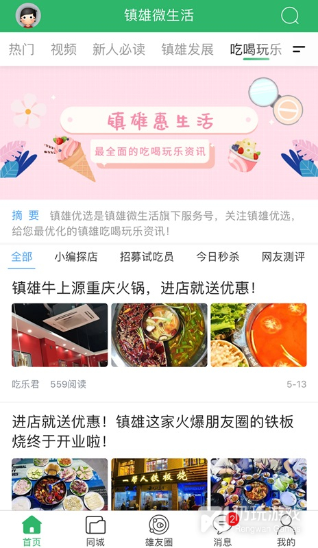 2、在这类你可以看到各种镇雄当地的人才招聘、特色美食、房屋租赁的信息。这款软件提供了最新的本地新闻,可以让你第一时间获取镇雄的最新消息