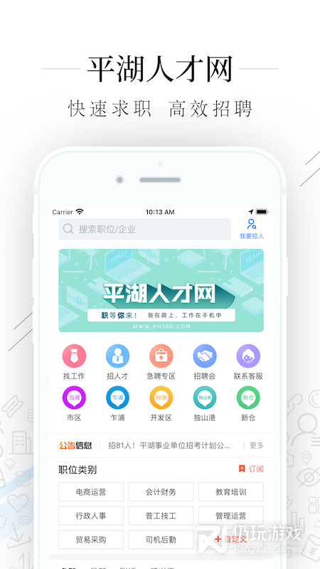 4、平湖人才网下载,一款聚焦平湖本地的综合求职招聘平台,通过平湖人才网可以更加高效快速的为企业和个人提供服务