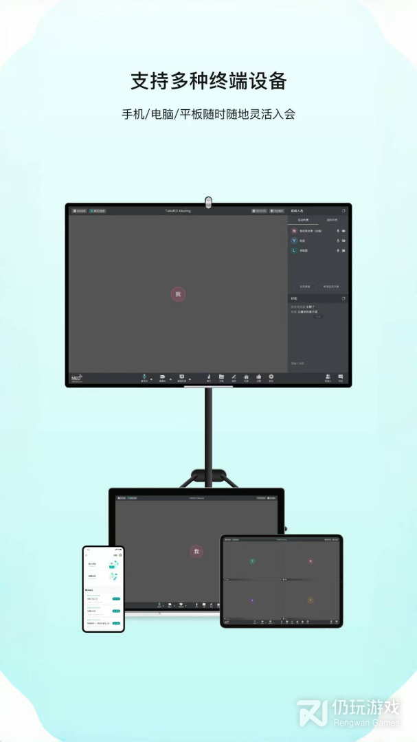 1.会议文档资料全面共享,大型会议轻松管理,支持多人同时在线观看直播 2.手机/电脑/平板随时随地灵活入会