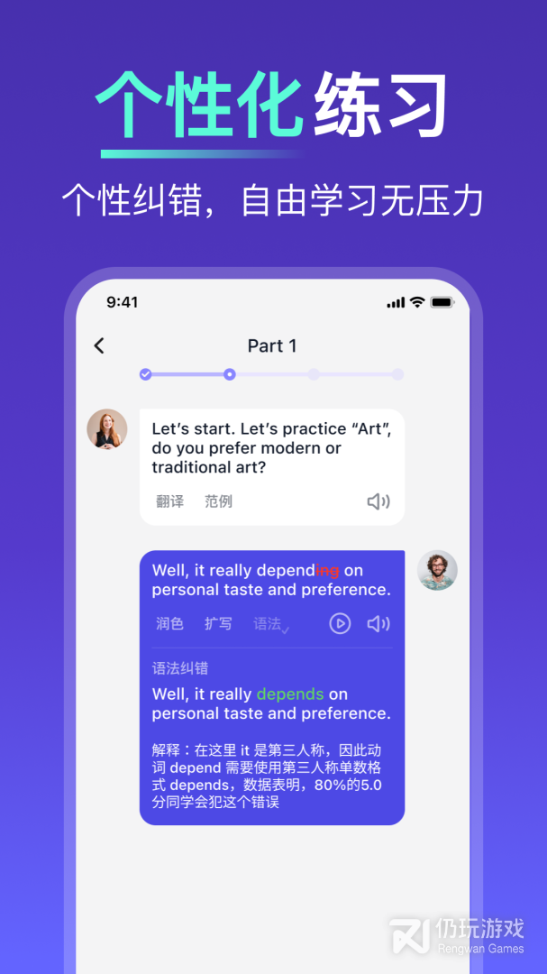 2、最重要的是,你将获得即时、立刻和专业的反馈!无需等待批改或找陪练,多说是你最佳的口语和写作伙伴,让你轻松突破雅思托福