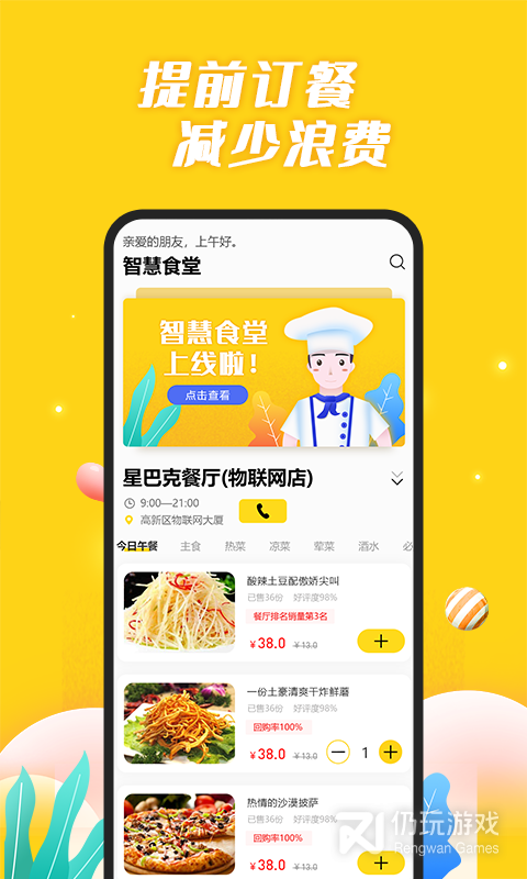 智慧食堂app是正奇晟业(北京)科技有限公司一款主打食堂预定的管理软件,致力于为各类企事业单位的食堂提供移动互联解决方案,帮助食堂全面提升服务和管理水平。通过乐订餐的预定功能,可以帮助食堂实现备餐,杜绝浪费;同时提高就餐效率,提升就餐体验,让员工更喜欢在食堂就餐;贴心互动,点评活动,让食堂也能做出私家菜。智慧食堂让您的食堂变简单!