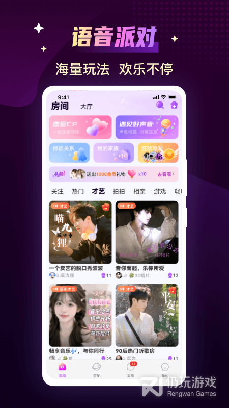 1、里面汇集了来自各个地区的实名认证的用户们,多种交友方式,并且用户们还能一键匹配,发现让自己心动的声音