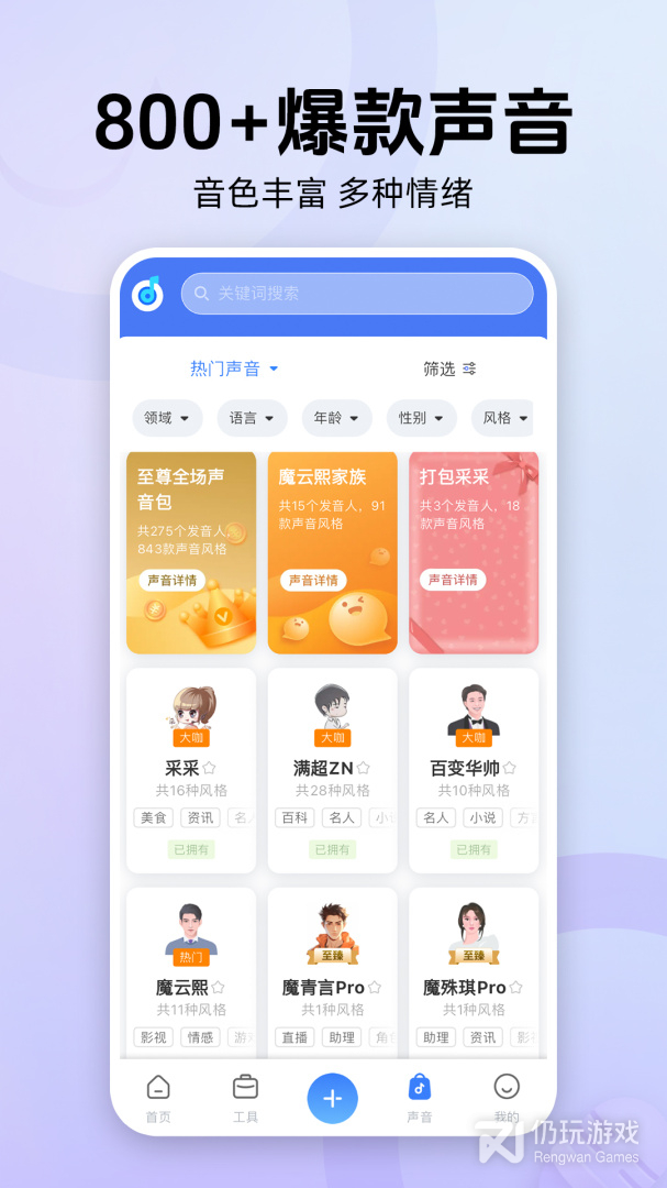 2、魔音工坊2024版是一个非常有意思的手机配音软件。在这里,你可以在视频上随意的进行音频设置,支持一键文字转音频,配置有各种风格的音频设置,让用户可以制作出高质量的视频,是视频剪辑和制作的用户完美的配音神器