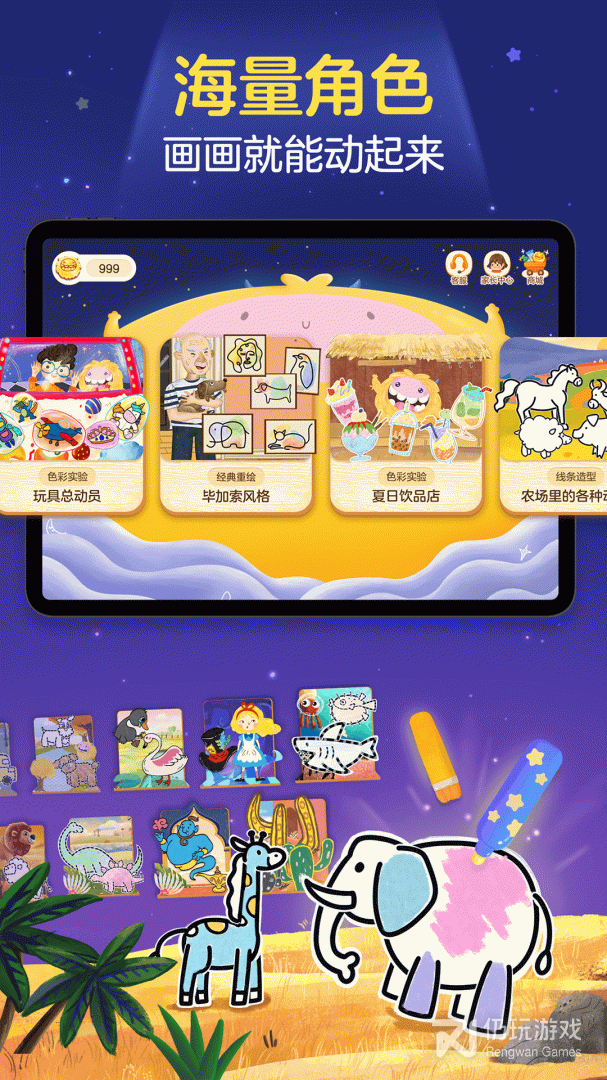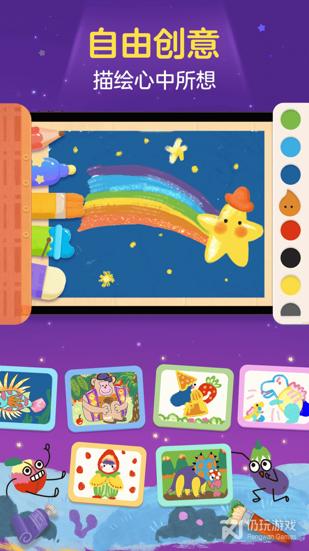 1、让小朋友们一步一步跟着画,慢慢学习让笔下的场景动起来,做当代神笔马良,这里有海量儿童挚爱的角色,涂画心中多彩世界,丰富的绘画工具让创作无限自由。专业美育团队为孩子们匠心打造,让孩子们爱上绘画