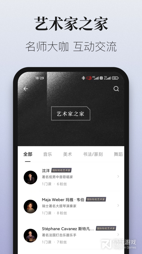 2、爱艺术+是非常优质专业的艺术学习交流软件,大家可以在软件中找到自己喜爱的艺术课程,全球知名艺术家为大家上课指导,都是在线直播的哦,轻松提升大家艺术水平,专业考级的学习课程也有,老师会为大家仔细讲解考试重点和方法技巧,帮助大家快速高效通过考级考试