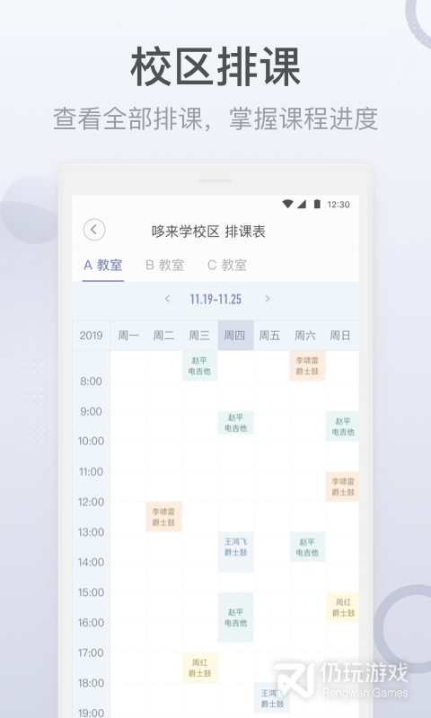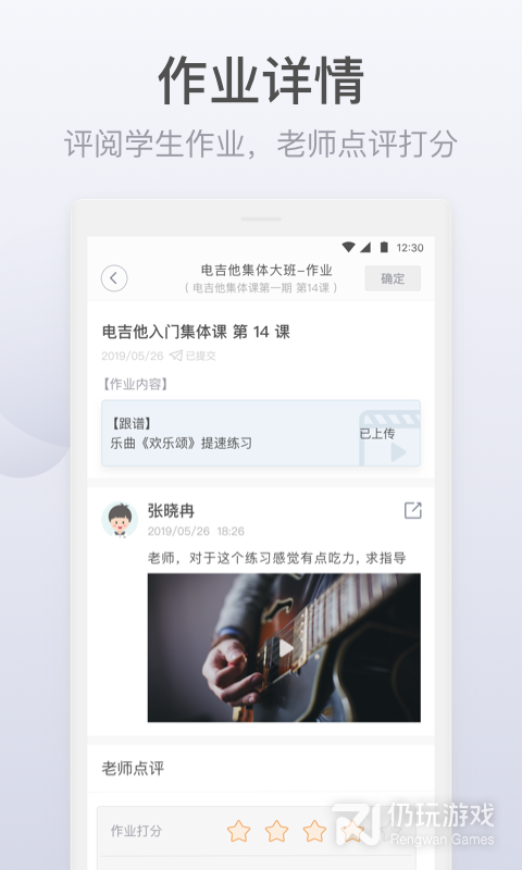 3、软件拥有校区管理,班级群聊,校区排课,作业详情等等功能服务, 可以帮助更好的音乐教育