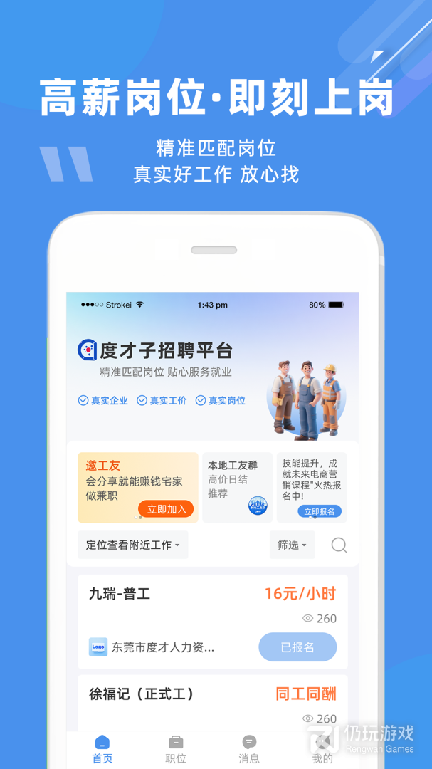 度才子APP专注以蓝领为生态面向毕业生、技工、普工等类人才招聘求职服务,100+所学校入驻,全国范围内企业岗位任你选择,任何企业招聘、求职入驻一律免费。